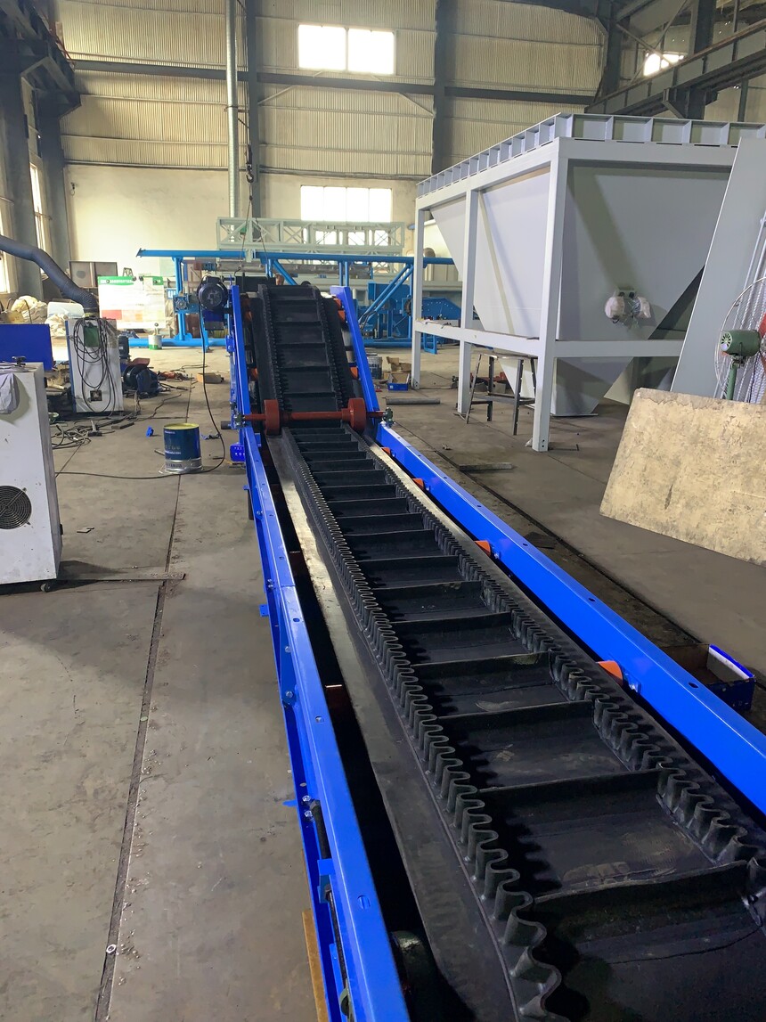 大倾角皮带机是在平行橡胶输送带两侧,增加不同高度的可弯曲伸缩的橡胶波形立式“裙边”,带体中间具有一定强度和弹性的“T”形或“C”形橡胶横隔板。使物料在一个匣形的容器中进行输送, 输送倾角小于40°时,使用“T”横隔板,倾角大于40°时,使用“C”型横隔板,倾角最大可达90°。
