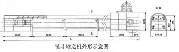 链斗式输送机(链斗输送机)产品外形示意图: